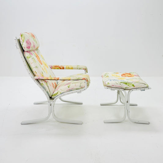 Mid-Century Ingmar Relling Siesta Lounge chair and ottoman Set in flower pattern 1970s Norway