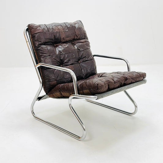 Mid-century sling brown leather lounge chair by Peter Hoyte, 1960s