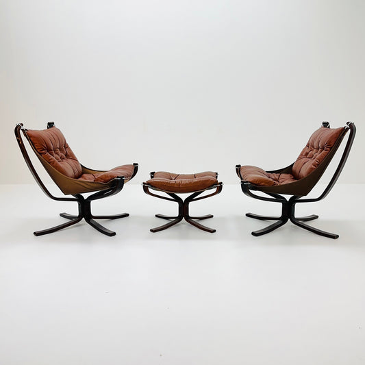 Mid century Falcon chairs and footstools by Sigurd Ressell for Vatne Møbler, 1970s, set of 3