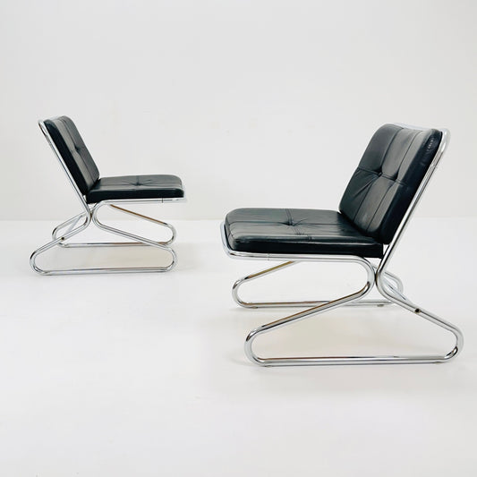 Mid century Bauhaus tubular lounge Chair black leather Italy 1980s
