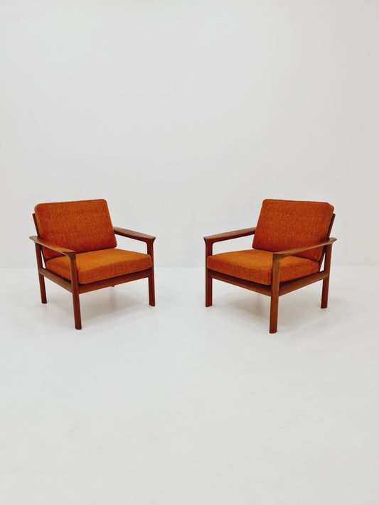 Mid century teak easy lounge chairs by Sven Ellekaer for Komfort , Set of 2, 1960s