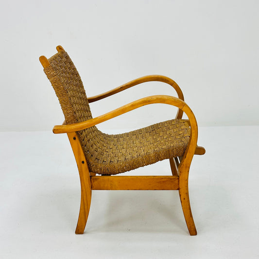 Bauhaus vintage papercord armchair by Ehrich Dieckmann, 1930s