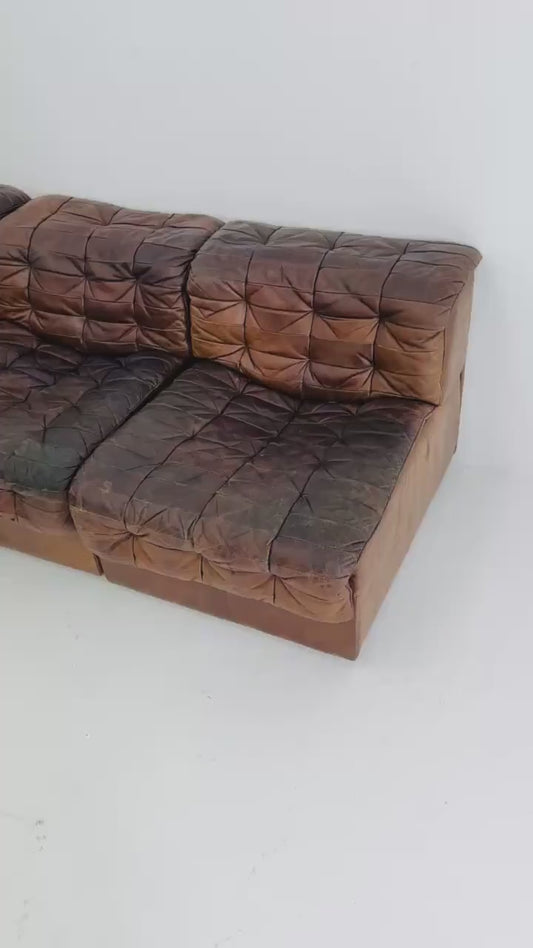 Set of 6 Mid Century DS11 Modular Patchwork Leather Sofa by De Sede, Switzerland, 1970s