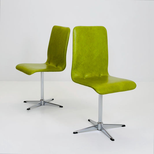 1 of 2 Bauhaus Mid-Century Lounge Swivel Chair — Chrome Base & Green faux leather — Germany, 1980s