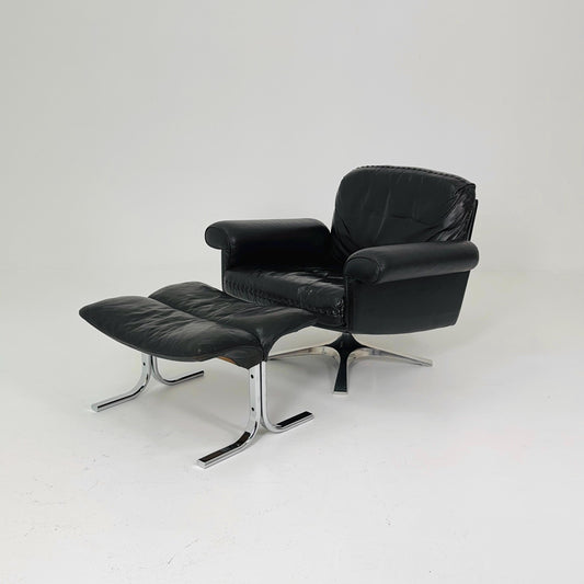 Mid Century De Sede "DS-31" armchair & ottoman in chocolate brown, Switzerland 1970s