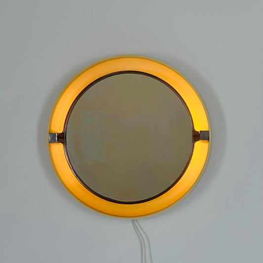 Mid century Large Round mirror with lighting & plexiglass edge 1960s