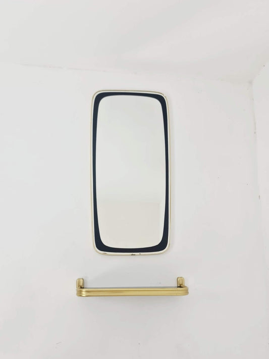 Mid-century Brass & Black Frame Minimalist Mirror and shelf , 1950s, Germany