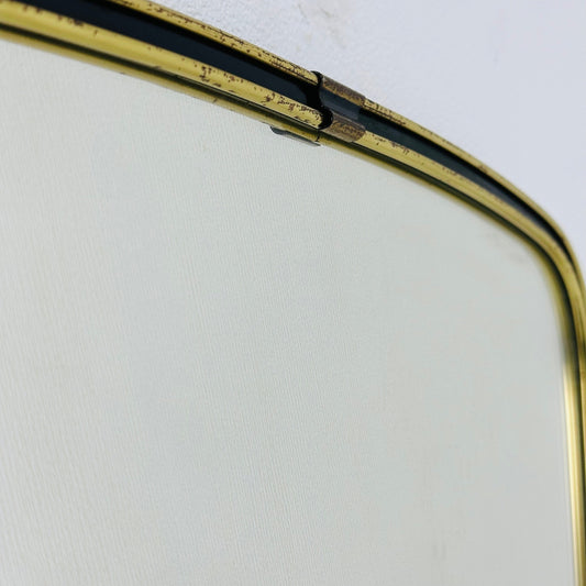 Mid Century asymmetric German brass Original kidney wall mirror from the 60s