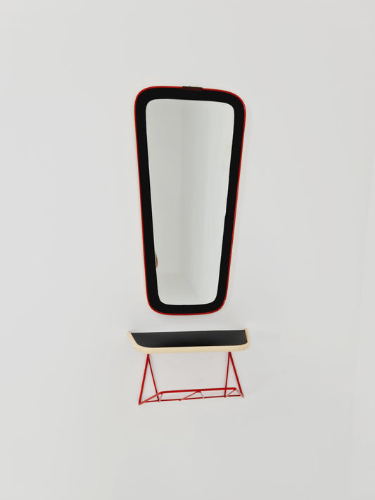 Mid Century asymmetric German Original kidney wall mirror with shelf from the 60s model Rockabilly