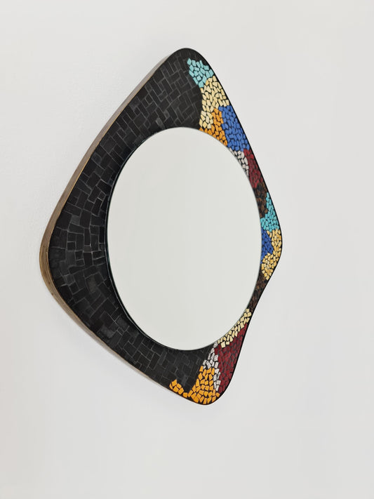 Mid Century MOSAIC asymmetric German brass Original kidney wall mirror from the 60s model Rockabilly