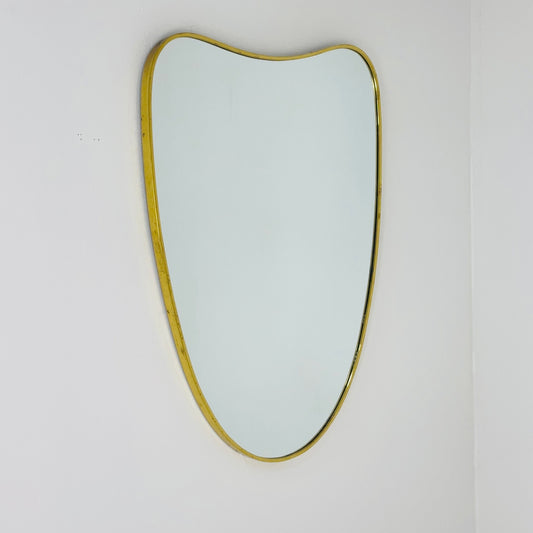 Mid Century asymmetric German brass Original kidney wall mirror from the 60s model number 986
