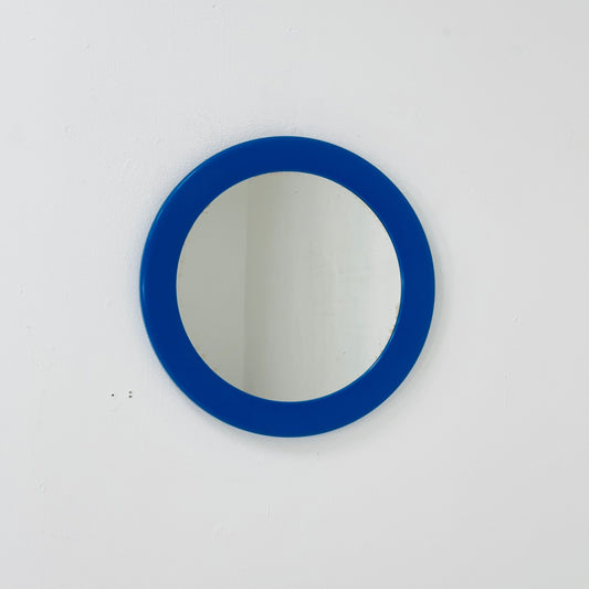 Space Age round wall mirror blue frame in plastic by Syla, France 1970s