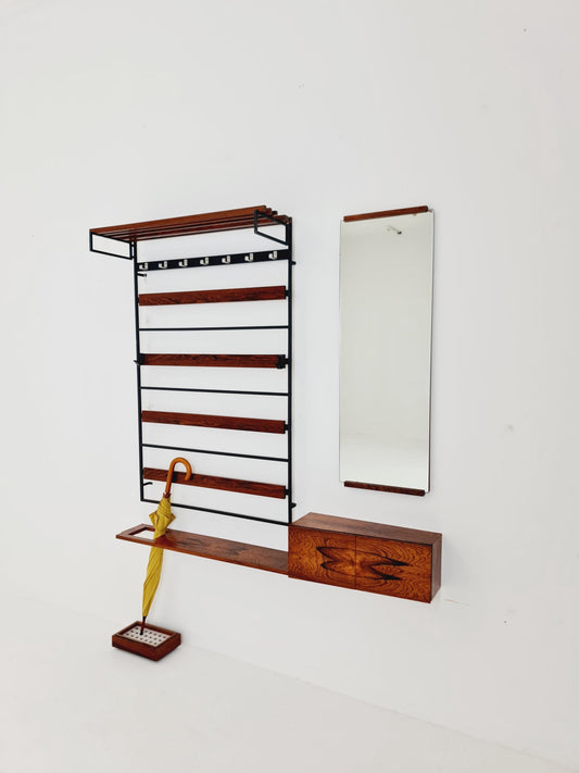 Germany Mid Century Rosewood wardrobe Set coat rack/ hallway wall wardrobe/ With Mirorr, Flor Cabinet 1960s