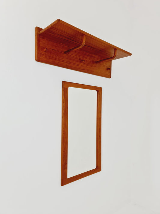 Mid century Danish Wardarobe Set with Mirror By Silkborg Møbelfabrik, teak wall coat rack 1960s