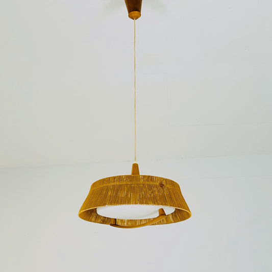 Mid century Pendant lamp sisal by Temde 1960s Germany