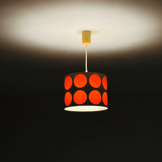 Mid-Century Pop Art Pendant Lamp – White Perforated Metal with Orange Circles, 1970s Germany