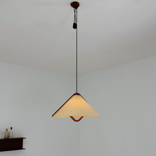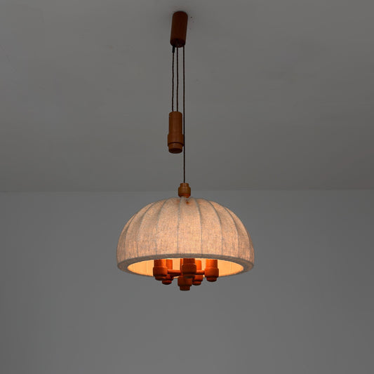 Mid-Century Adjustable Teak Wood & Fabric Pendant Lamp by Domus, Germany, 1960s