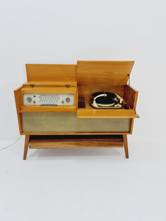 Mid Century Modern German ash record player, radio by Braun “MM 4 ”, 1960s