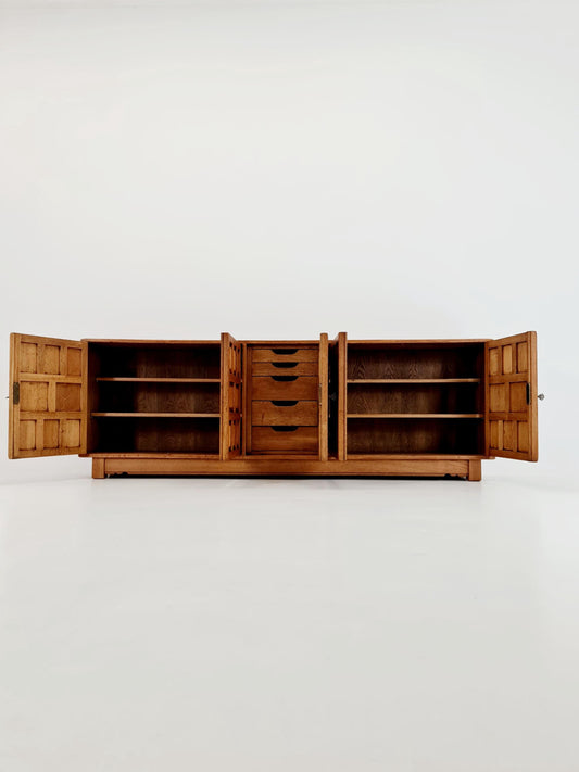 Rare Mid century Spanish Solid oak Brutalist Sideboard ,1960s