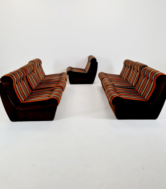 German mid century brown modular sofa/couch, 1970s, set of 8