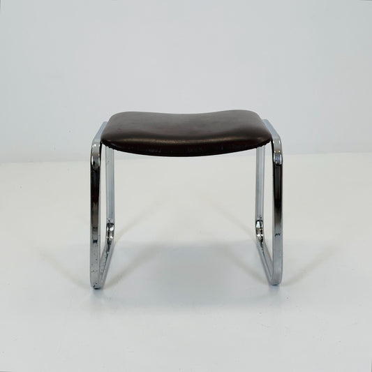 Mid-Century Bauhaus Chrome Stool with Brown Leather | Germany 1980s | Vintage Industrial Seating