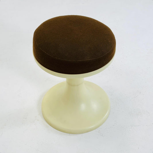 Vintage German Tulip Stool – 1970s, White ABS with Brown Fabric Seat