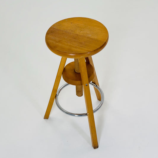 Mid century solid natural wood adjustable screw Ikea vintage bar stool 1990s Sweden