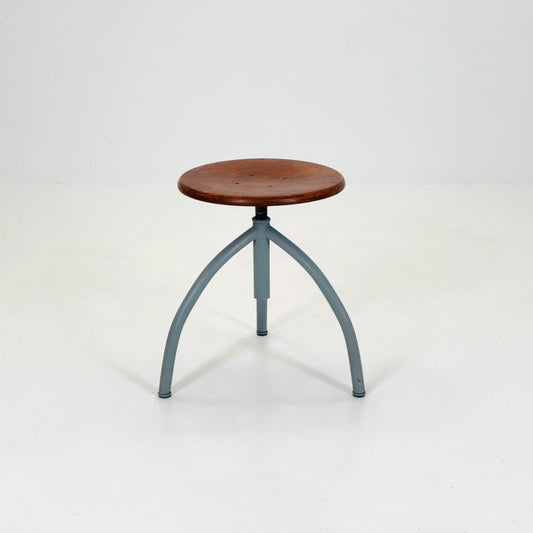 Mid Century Vintage Industrial Adjustable Tripod Stool 1950s | Iron & Wood | Czech Industrial Design | Workshop Stool