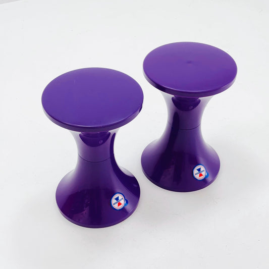 Set of 2 Tam Tam Tulip Stool Vintage Space Age by Henry Massonnet Atomic Purple France 2000s