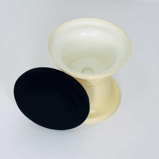 Space Age Plastic Hourglass Stool in Cream with Black Minimalist Accent Seat 1970s
