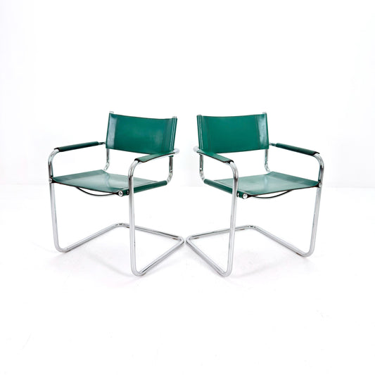 Set of 2 S34 Bauhaus Cantilever Chairs – Dark Green Leather – Mart Stam & Marcel Breuer – Italy 1980s