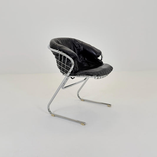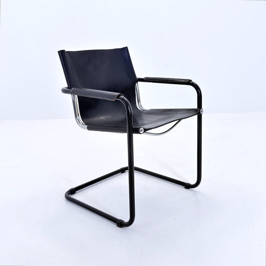 Mid Century Bauhaus MG5 Visitor Chair in Black Leather by Mart Stam & Marcel Breuer for Matteo Grassi, 1970s