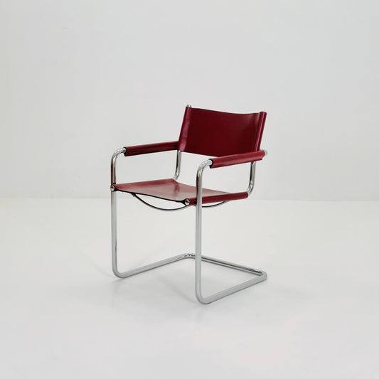 Mid century Bauhaus Matteo Grassi Mg5 wine red leather cantilever armchair by Mart Stam italy 1980s