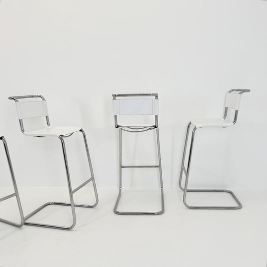 1 of 5 Bauhaus S39 L Bar Stools by Mart Stam for Thonet – white Vegetal Leather & Chrome – 1970s Germany