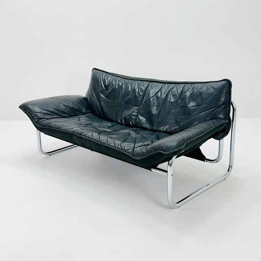 Mid century Black leather sofa by Johan Bertil Häggström for Ikea 1980s Sweden