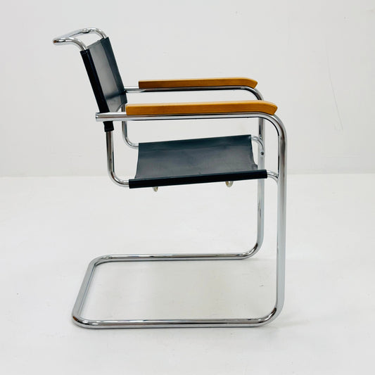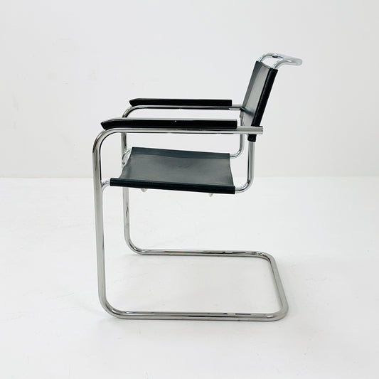 Mid century Bauhaus black leather iconic S34 armchair by mart Stam for Thonet 1980s