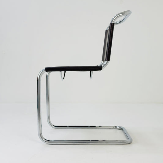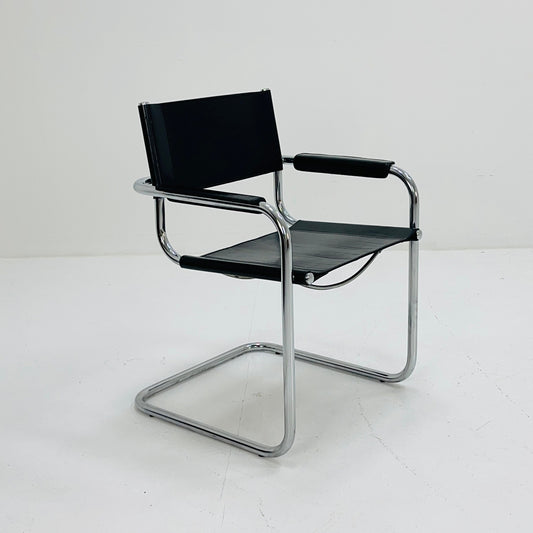 Mid Century iconic Mart Stam S34 armchair / Bauhaus chrome tube steel and leather / 80s vintage cantilever chair s43