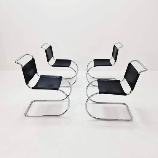 Set of 4 MR10 lounge black leather chairs design by Ludwig Mies van der Rohe , 1980s Italy