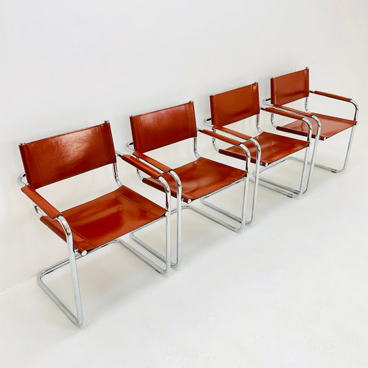 Set of 4 Mid century Model S34 Cognac Leather armchairs by Mart Stam & Marcel Breuer 1980s Italy