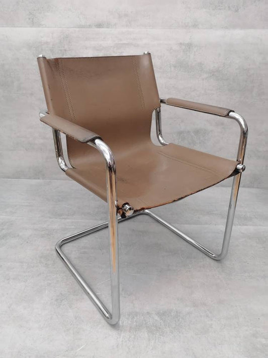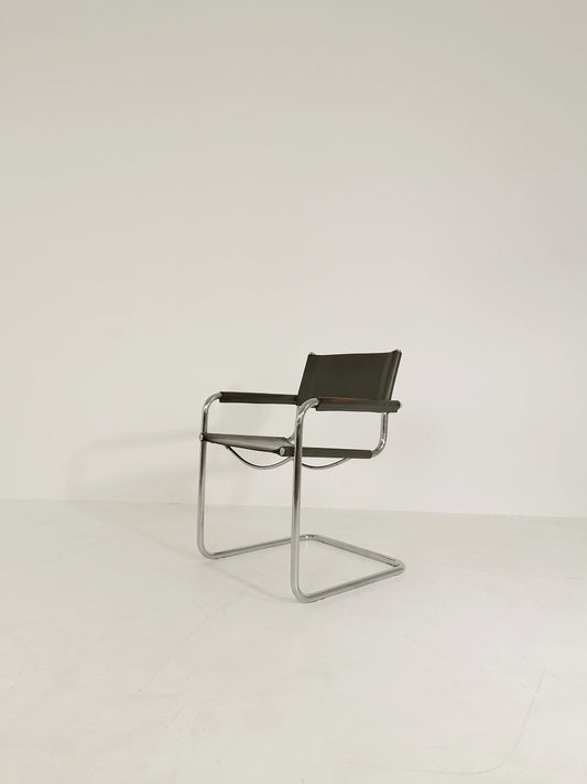 1 of 2 Mid-Century brown Vintage S33 dark brown chair from Mart Stam by Fasem Italy 1980er