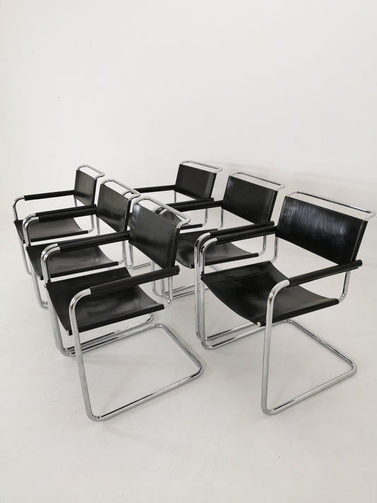 Set of 6 Black S34 Tubular Steel Chairs by Mart Stam for Jox Interni - 1970s