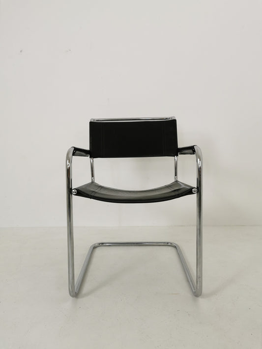1 of 6 Black S34 Tubular Steel Chairs by Mart Stam for Jox Interni - 1970s
