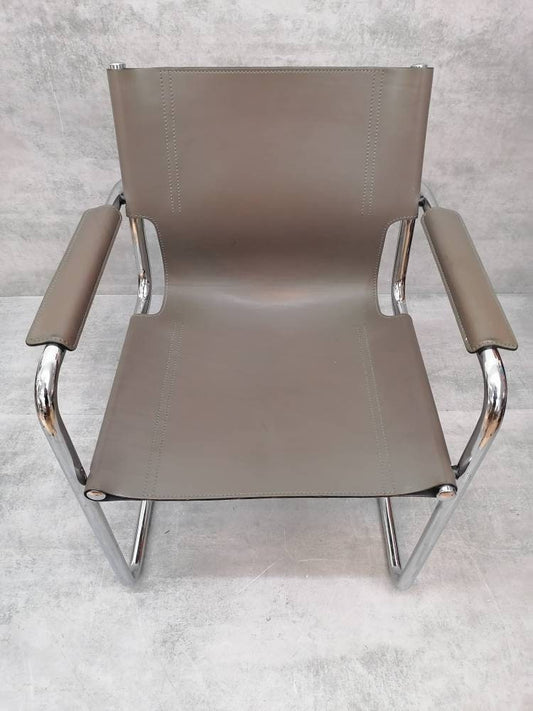 1 of 6 Orginal Matteo Grassi visitor chair in gray leather 1970s