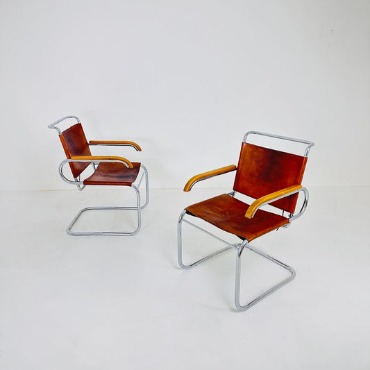 Set of 2 Mid century arm chairs set model B55 by Marcel Breuer & Anton Lorenz Italy