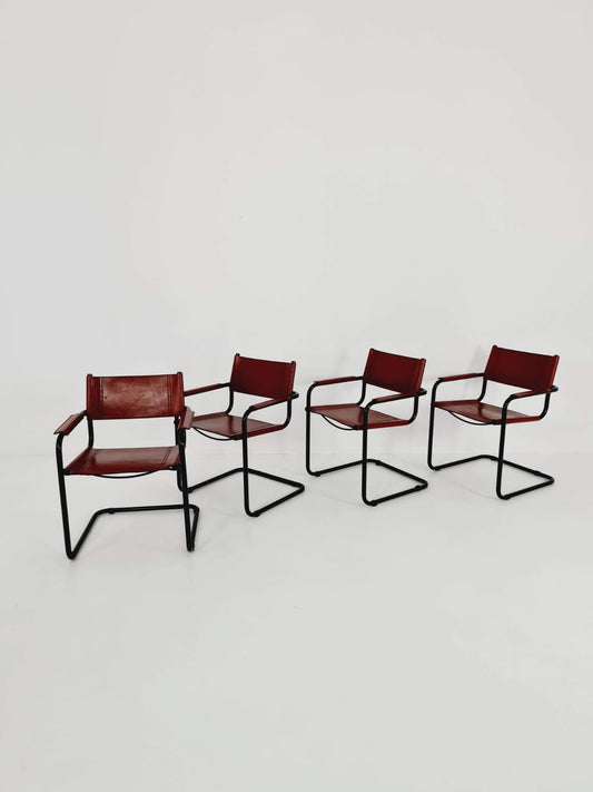 Set of 4 Model MG5 Centro Studio Desk Chairs in Dark Cognac by Mart Stam & Marcel Breuer, 1970s