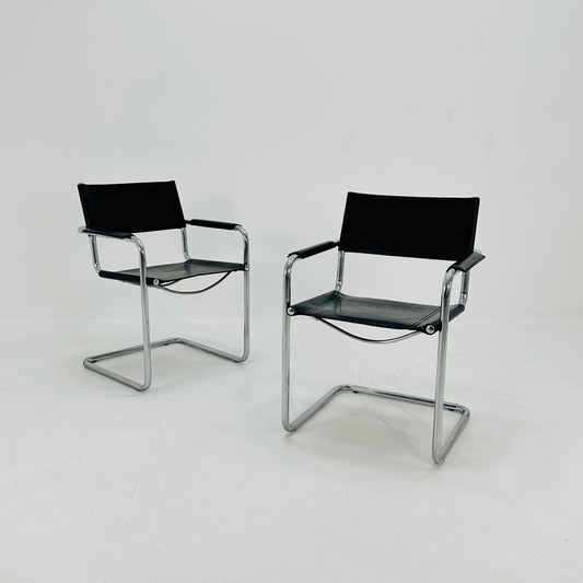 1 von 2 Vintage Model S34 black Saddle Leather Dining Chairs by Mart Stam & Marcel Breuer 1980s