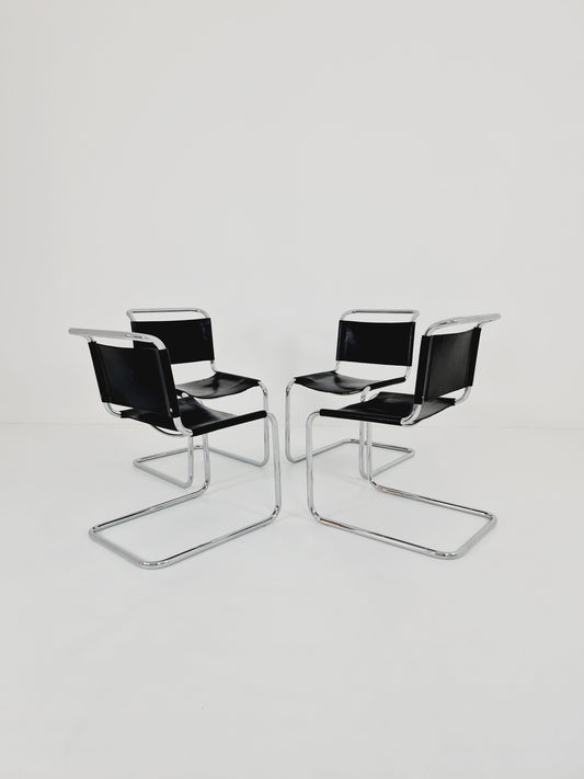 set of 4 Mid-Century Vintage S33 black Chairs by Mart Stam & Marcel Breuer from Thonet 1980s