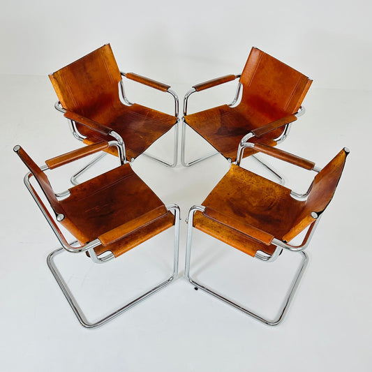 set of 4 Matteo Grassi original Bauhaus design Visitor model Chair cognac Leather 1970s