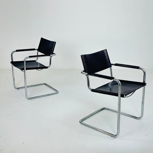 Set of 2 vintage B34 dark chocolate Color leather cantilevered chairs by Mart Stam for Jox Interni italy 1980s