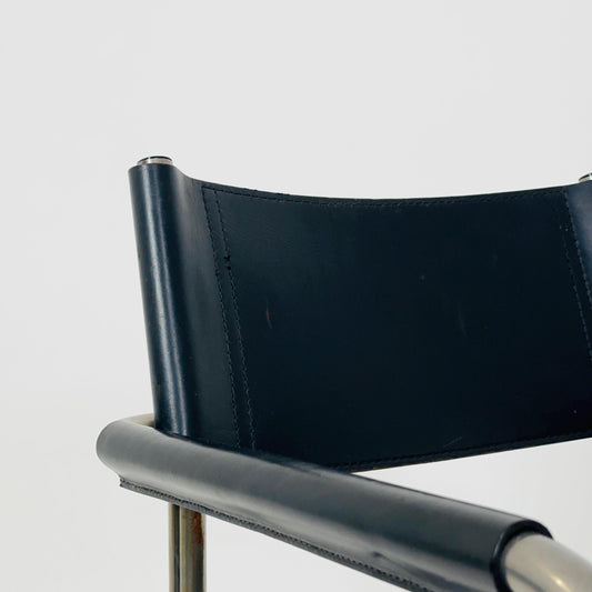 Set of 2 Mid century Bauhaus B34 black leather cantilevered chairs by Mart Stam for Jox Interni italy 1980s